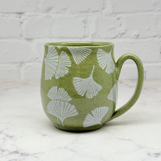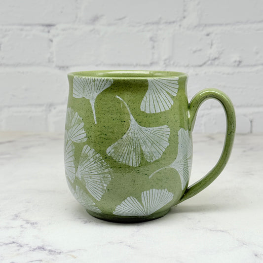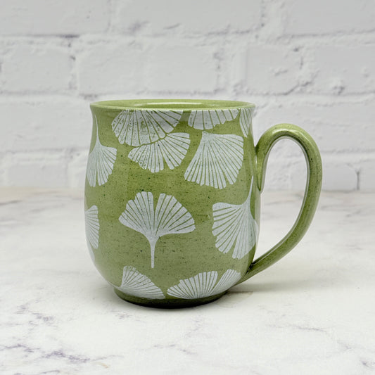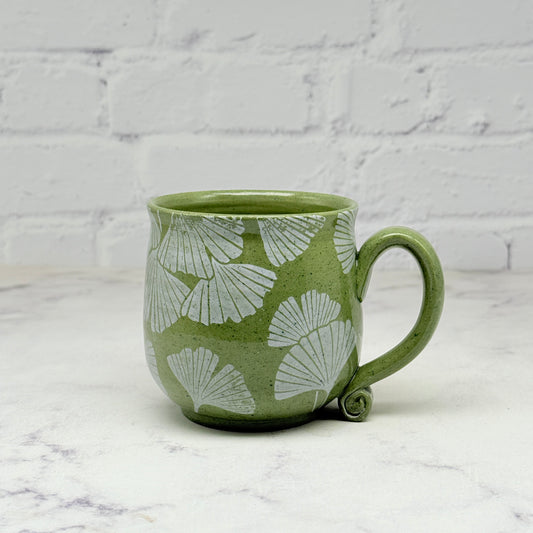 Green with White Gingko Design Mug 6