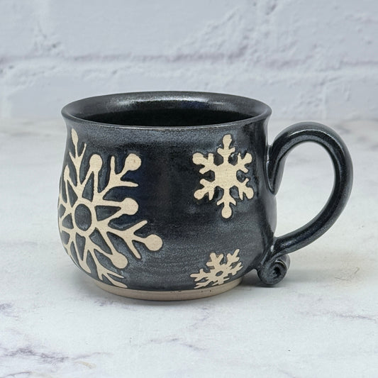 Black with Snowflakes Cafe Mug