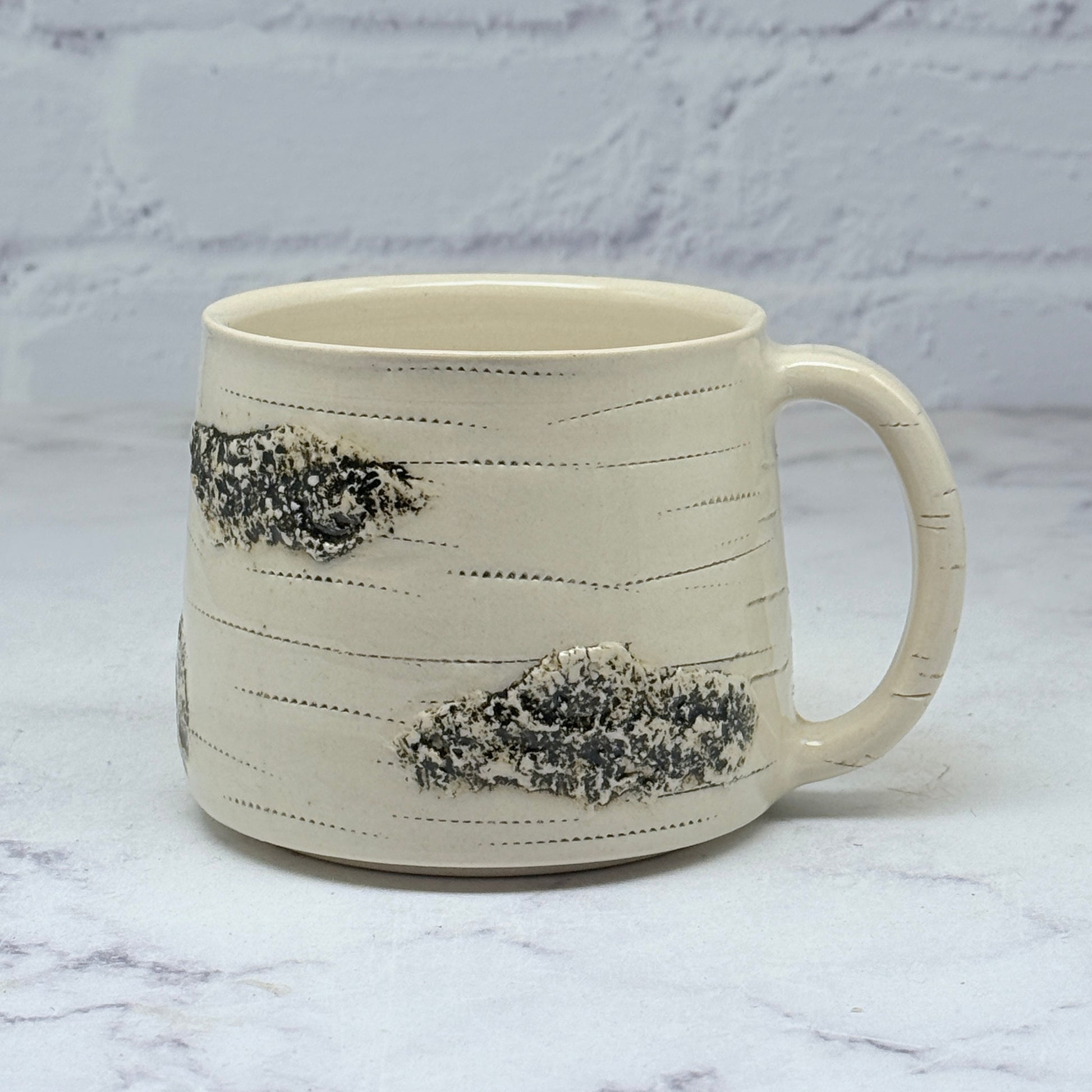 This beautiful mug has unique raised birch texture throughout. It would make a great addition to your collection or a great gift for a loved one.