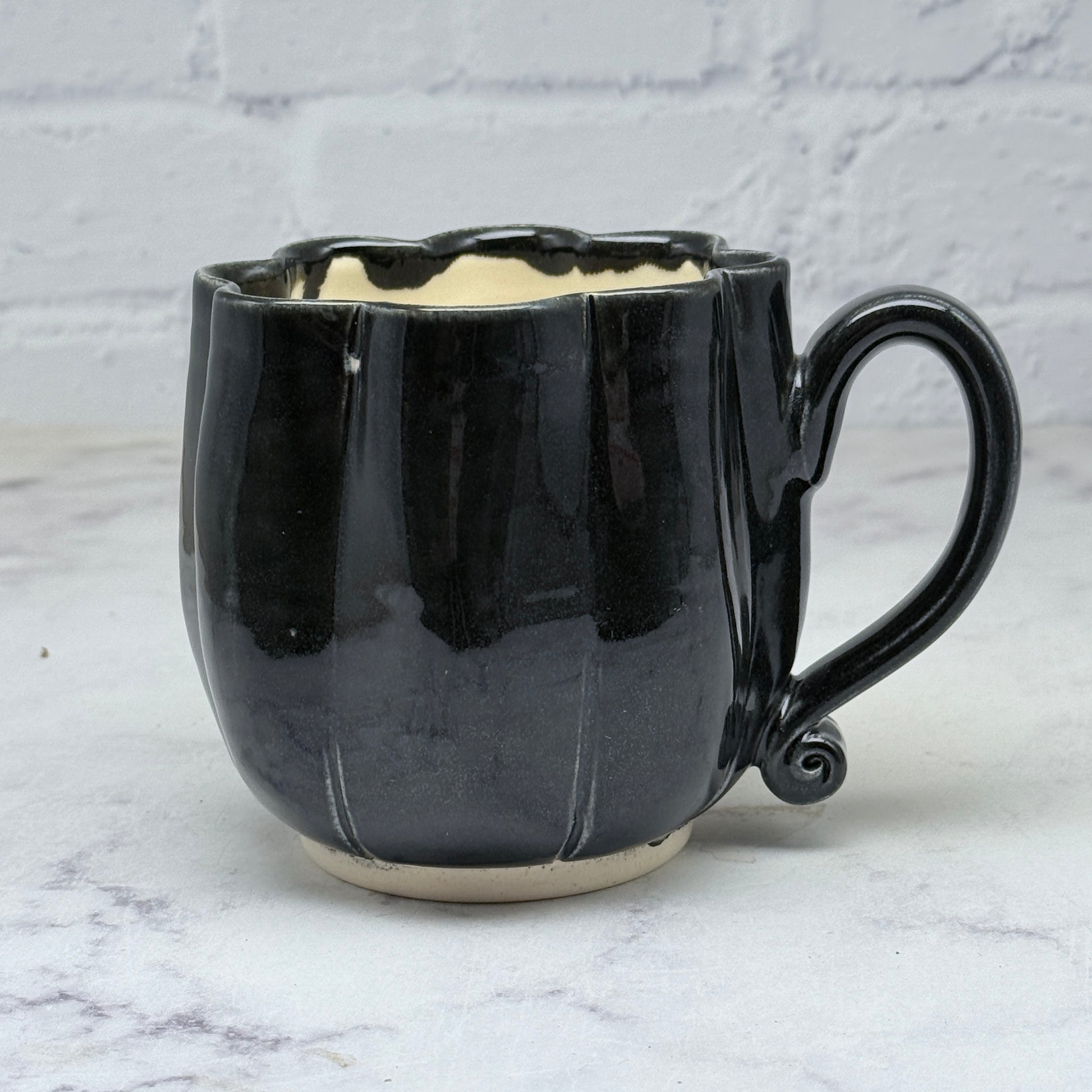 This beautiful mug has a unique pumpkin shape. It would make a great addition to your collection or a great gift for a loved one.