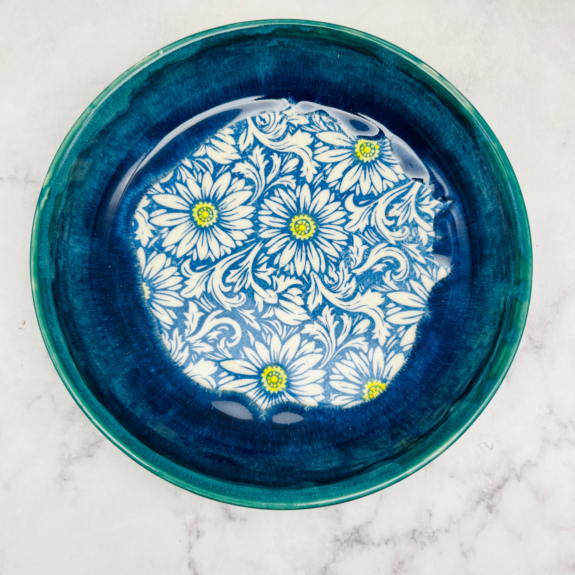 Blue with Floral Design Low Bowl 2