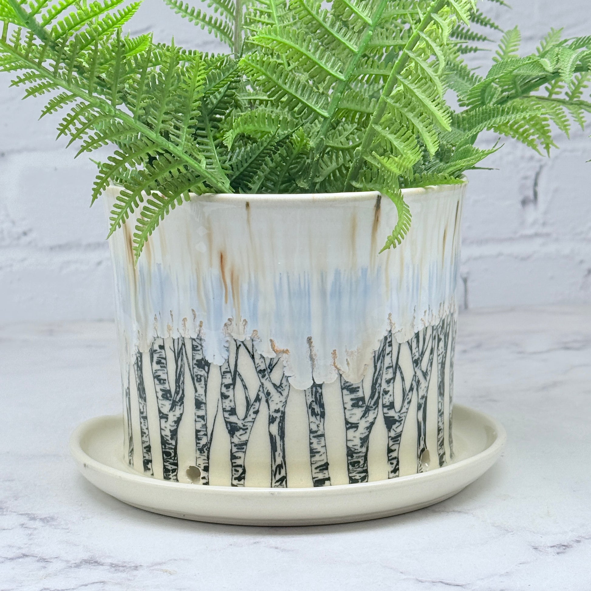 This beautiful planter is glazed on the top and a unique design on the bottom.