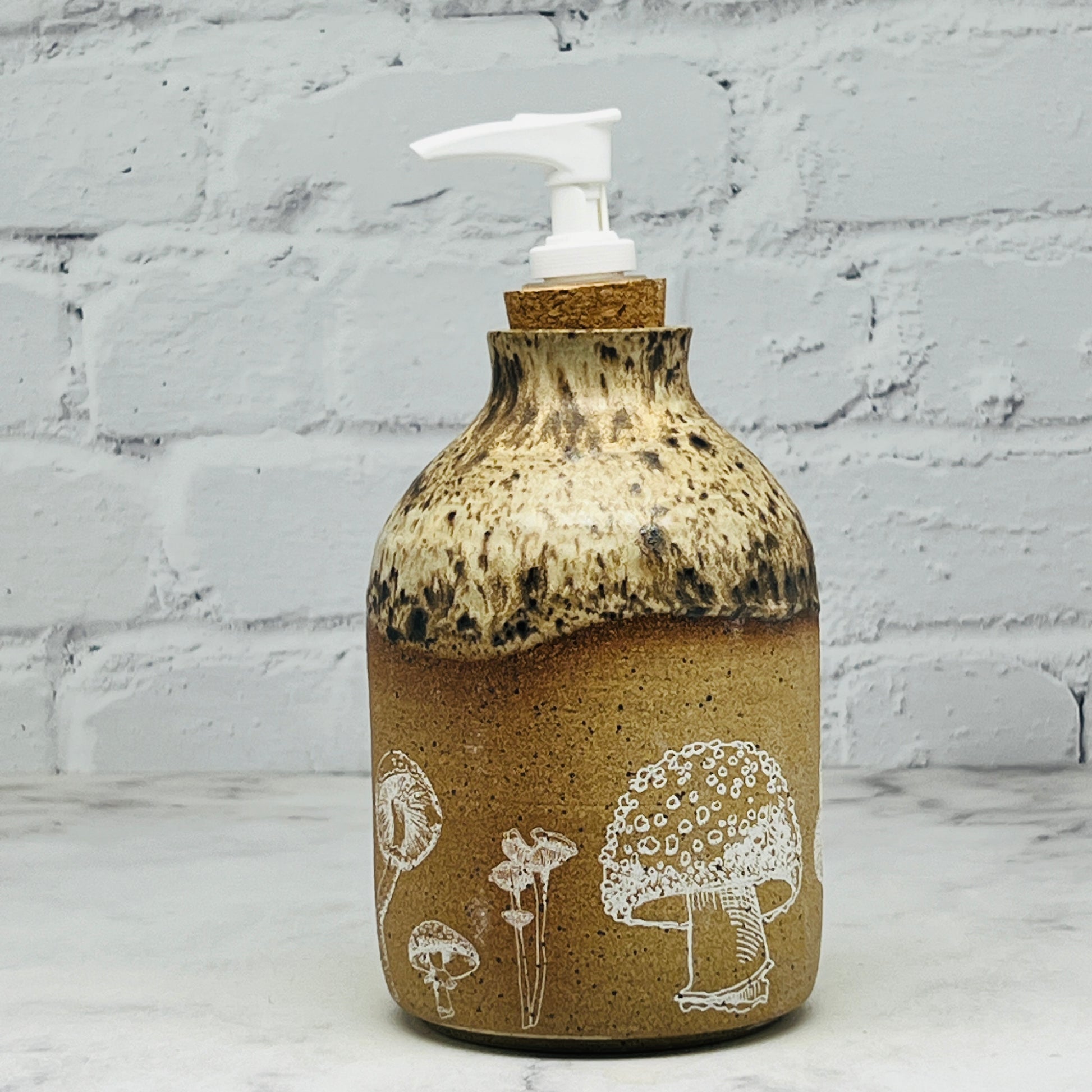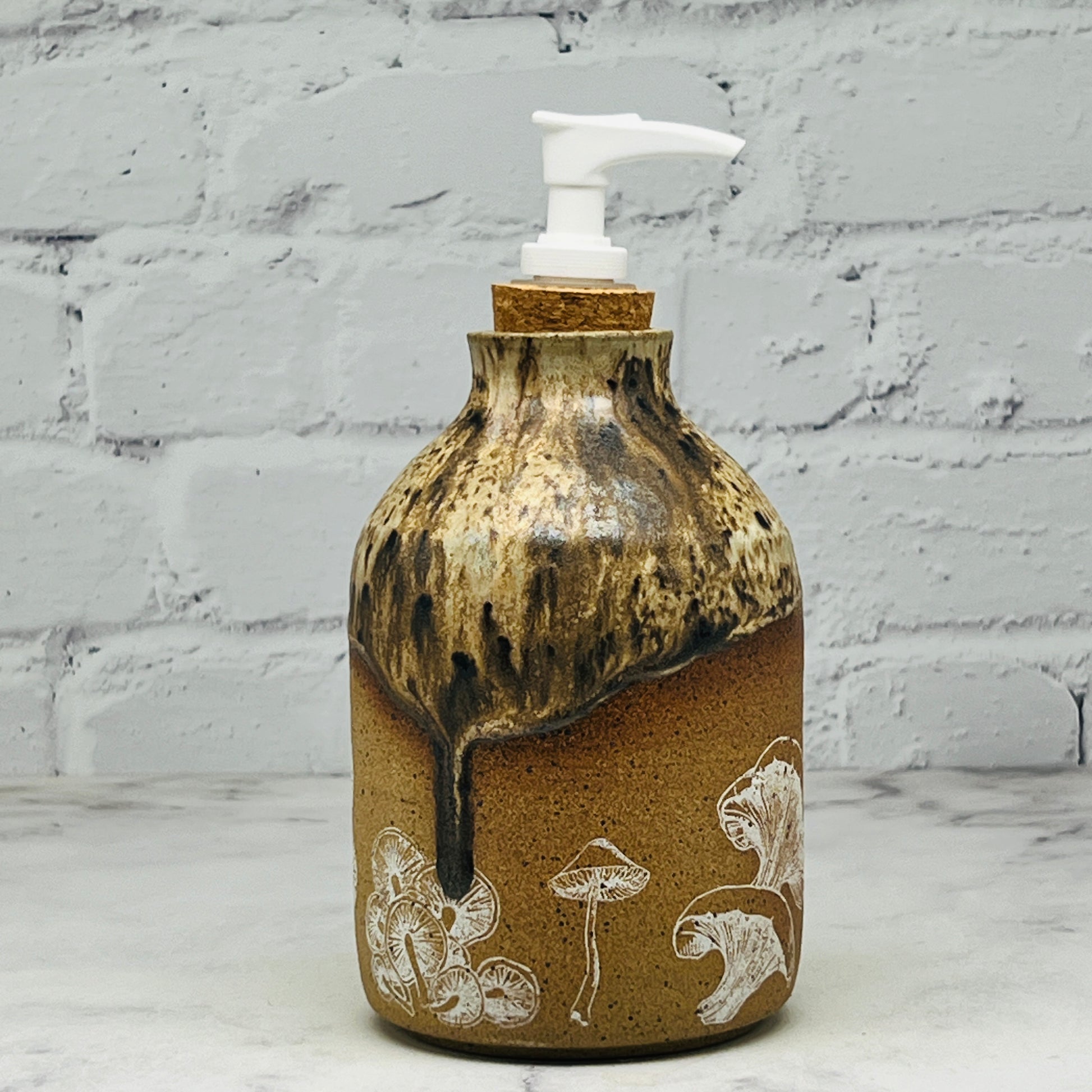 This soap dispenser bottle has a unique design and glaze combo. It would make a great addition to your home decor or a excellent gift for a loved one.
