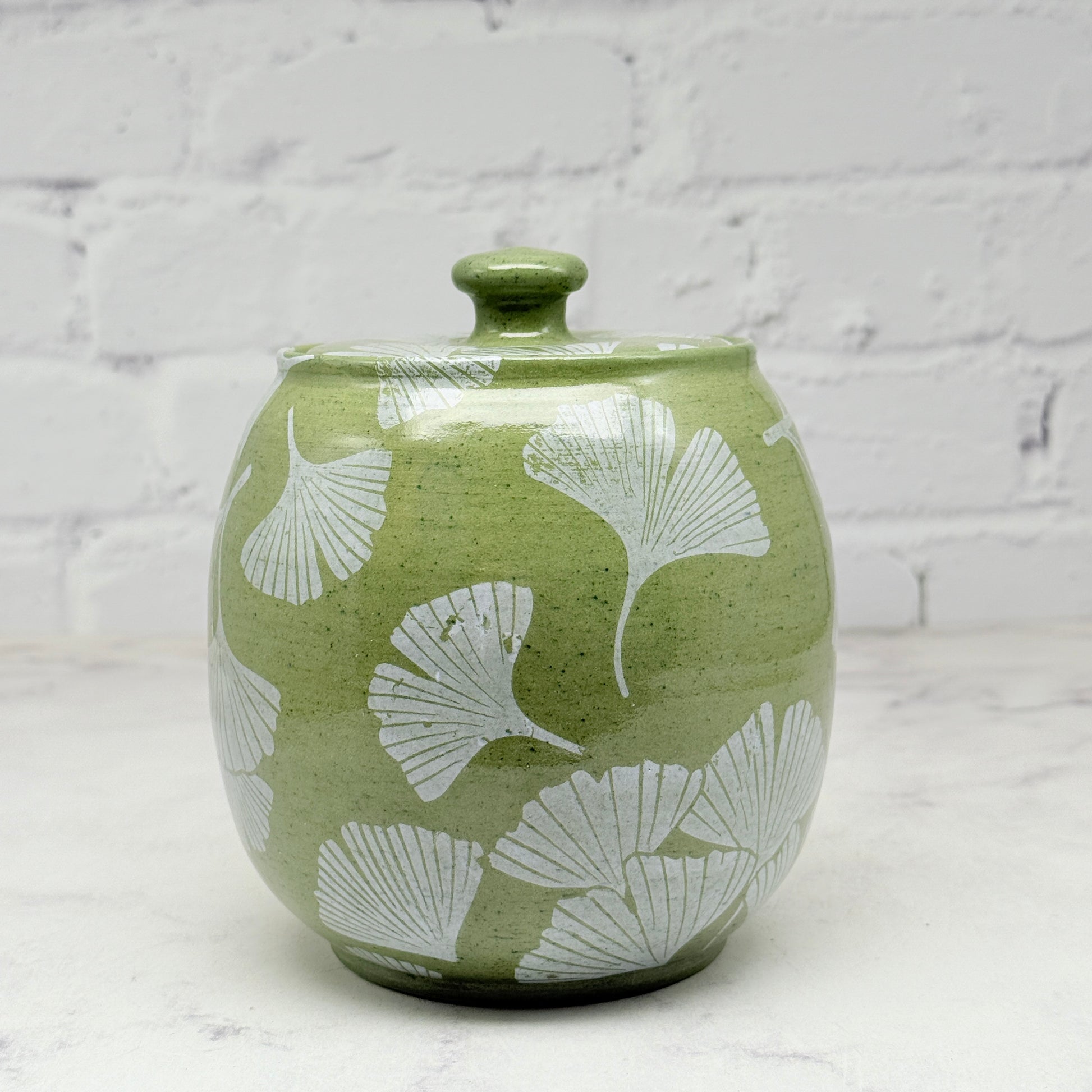 Green with White Gingko Lidded Container