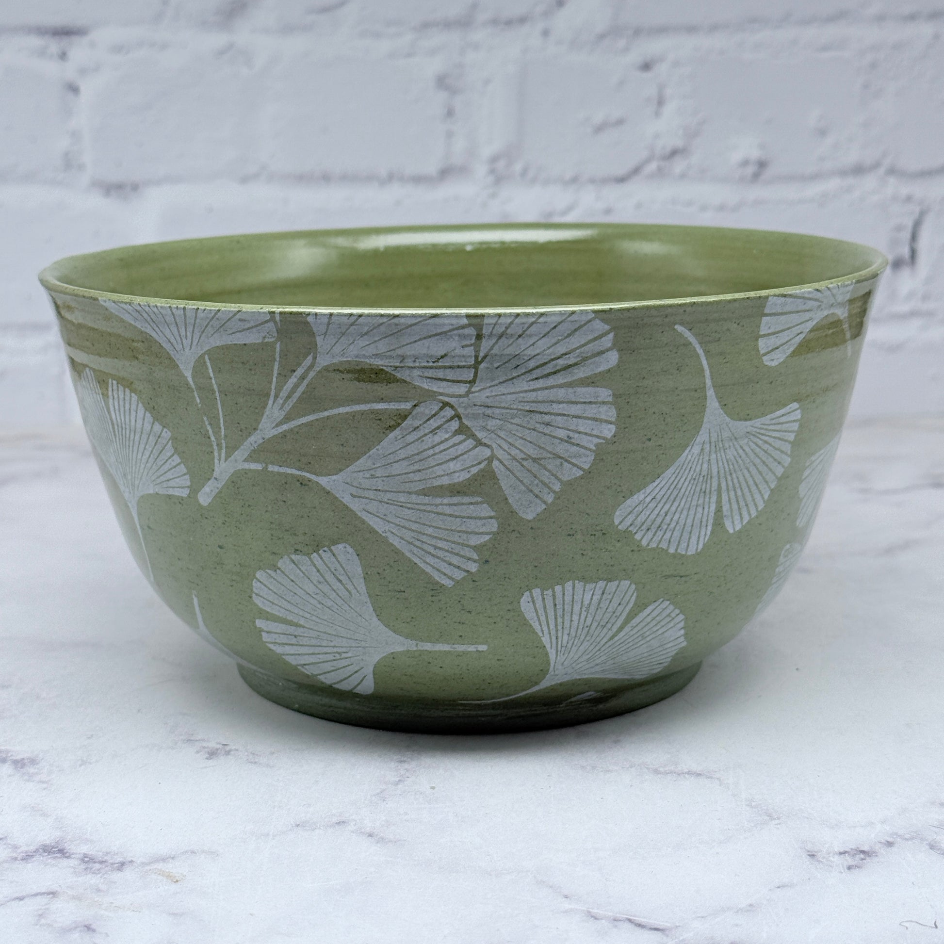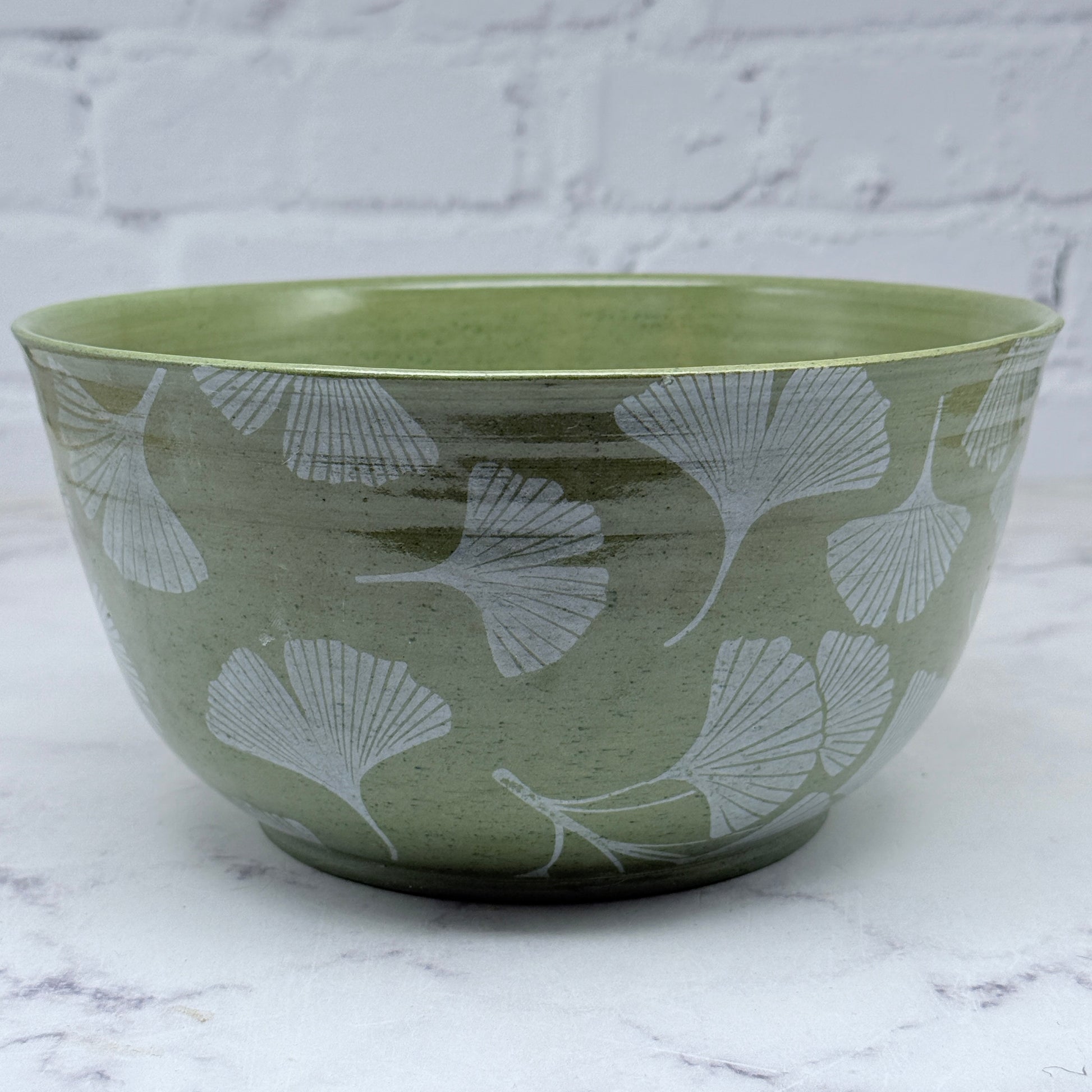 This bowl is a great versatile size. It is decorated with a unique design throughout on a colored stoneware clay. It would make a great addition to your kitchen or a great gift for a loved one.