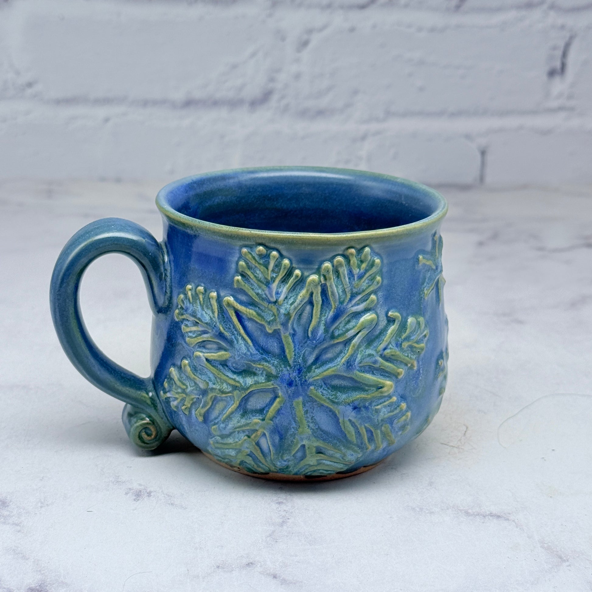 This beautiful mug has unique raised snowflake design throughout. It would make a great addition to your collection or a great gift for a loved one