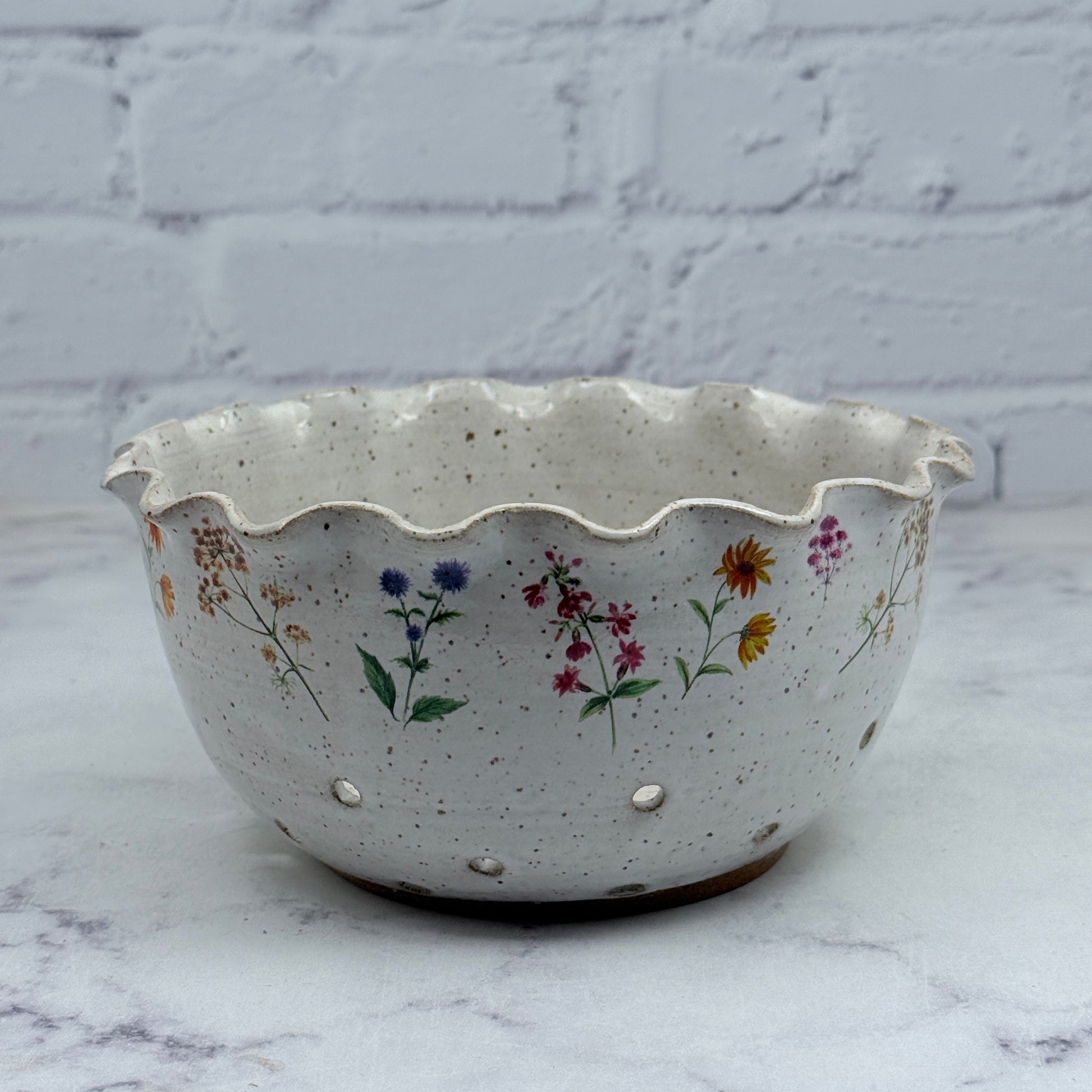 This classic ceramic colander is made with a stoneware clay. It is great for rinsing off berries, tomatoes, grapes, etc.