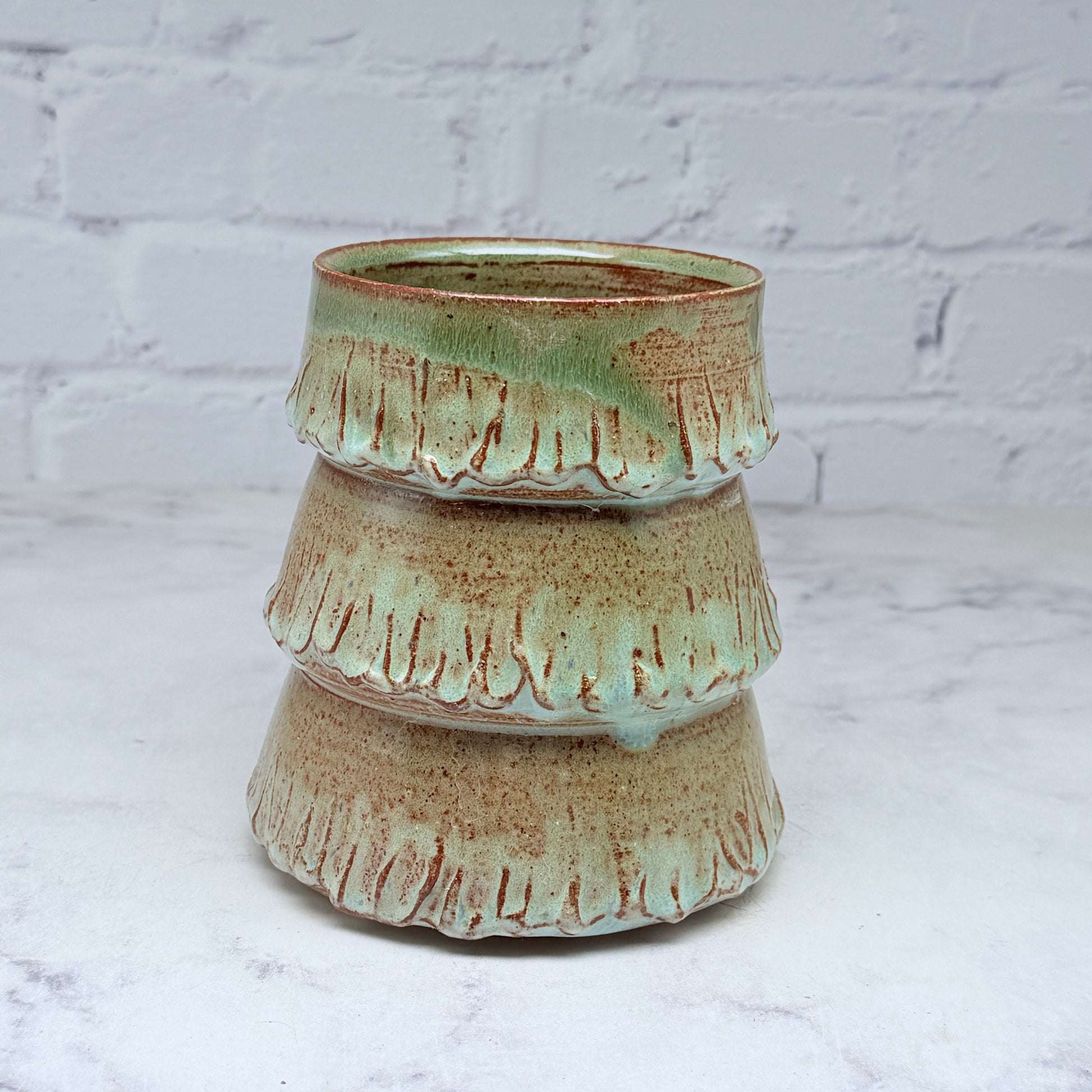 This beautiful vase is shaped to look like a pine tree. It would make a great addition to your collection or a great gift for a loved one. It could also be used as a utensil holder.