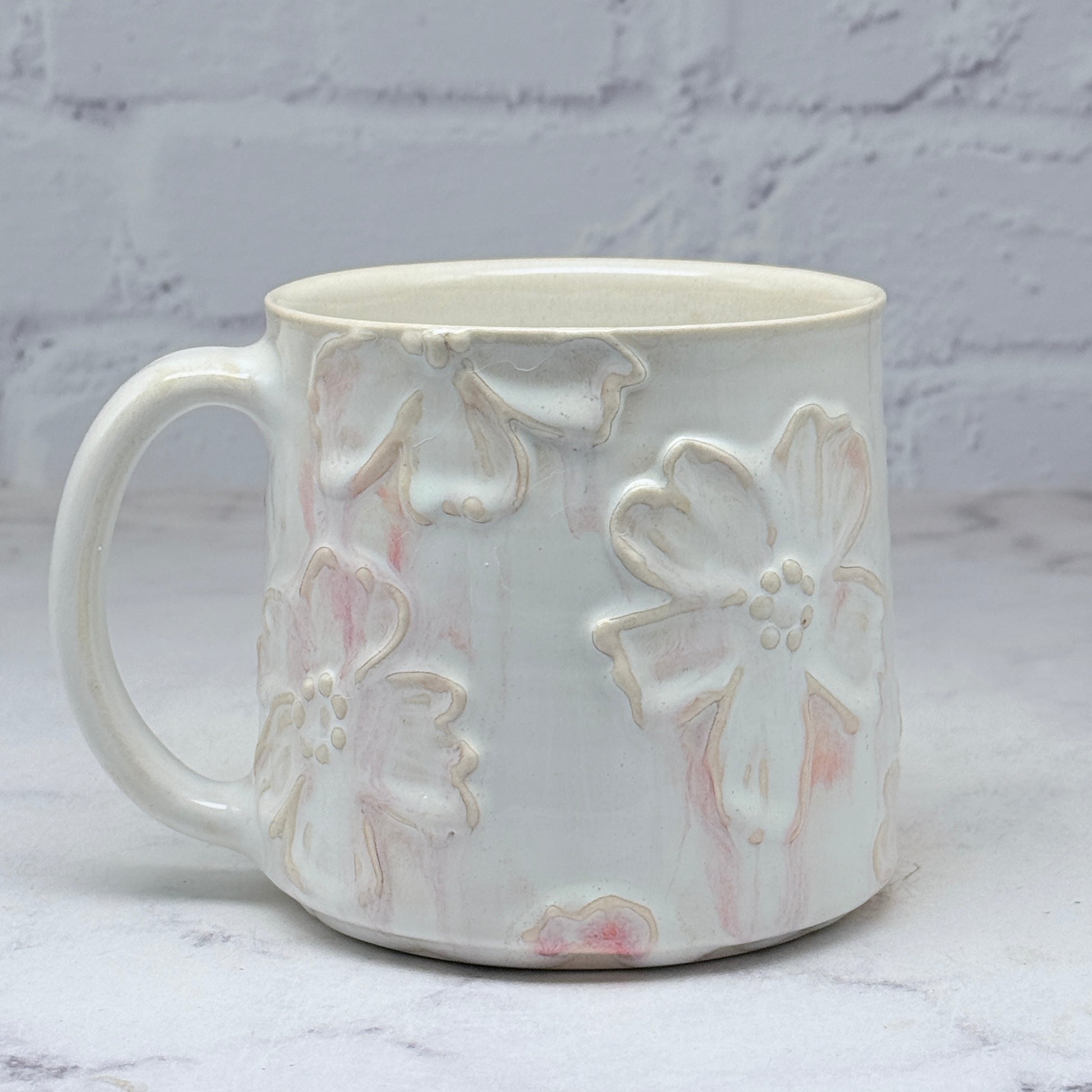 This adorable mug has unique flowers design handmade with slip. The flowers will have a raised surface. It would make a great addition to your collection or a great gift for a loved one.