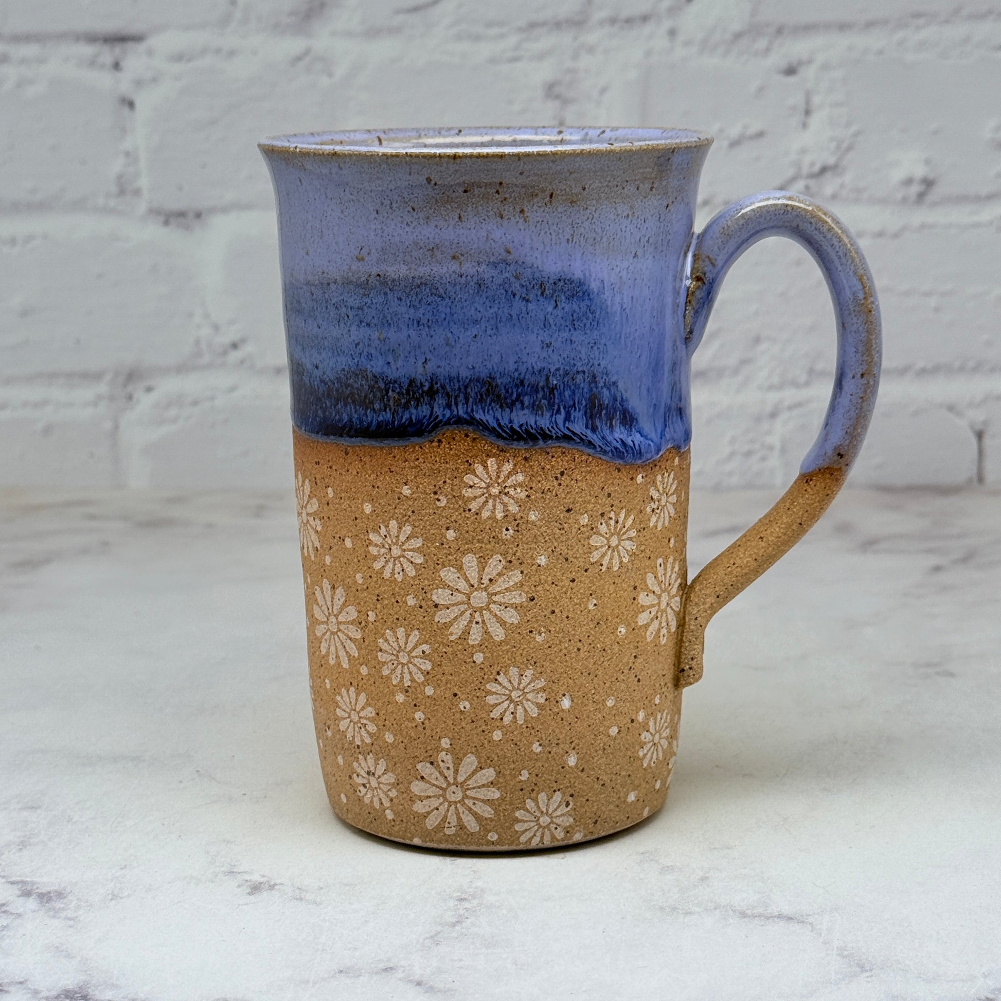 This beautiful mug has unique design at the bottom that is left unglazed and a beautiful glaze at the top. It would make a great addition to your collection or a great gift for a loved one.