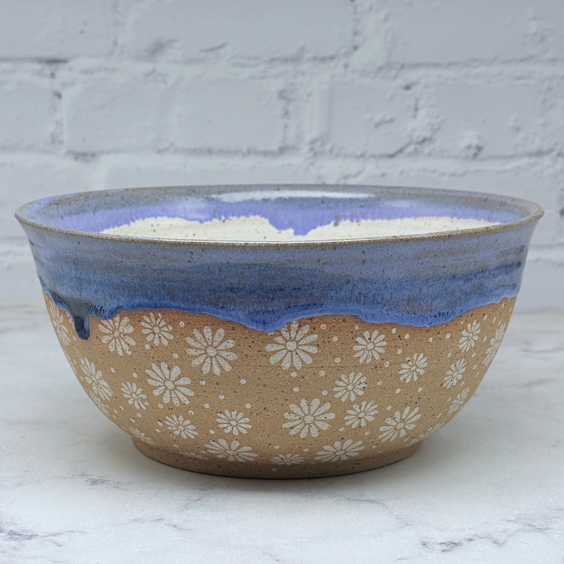 This bowl is a great versatile size. It has a unique design at the bottom and a beautiful glaze on top. It would make a great addition to your kitchen or a great gift for a loved one.