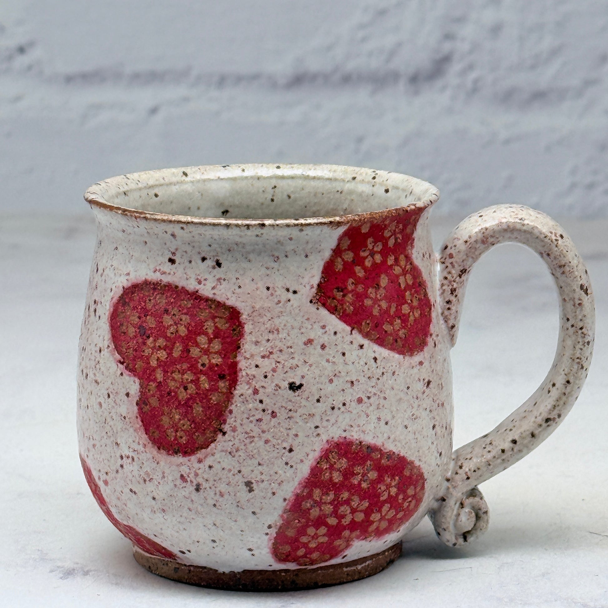 This beautiful mug has heart design throughout. The design is left unglazed. It would make a great addition to your collection or a great gift for a loved one.