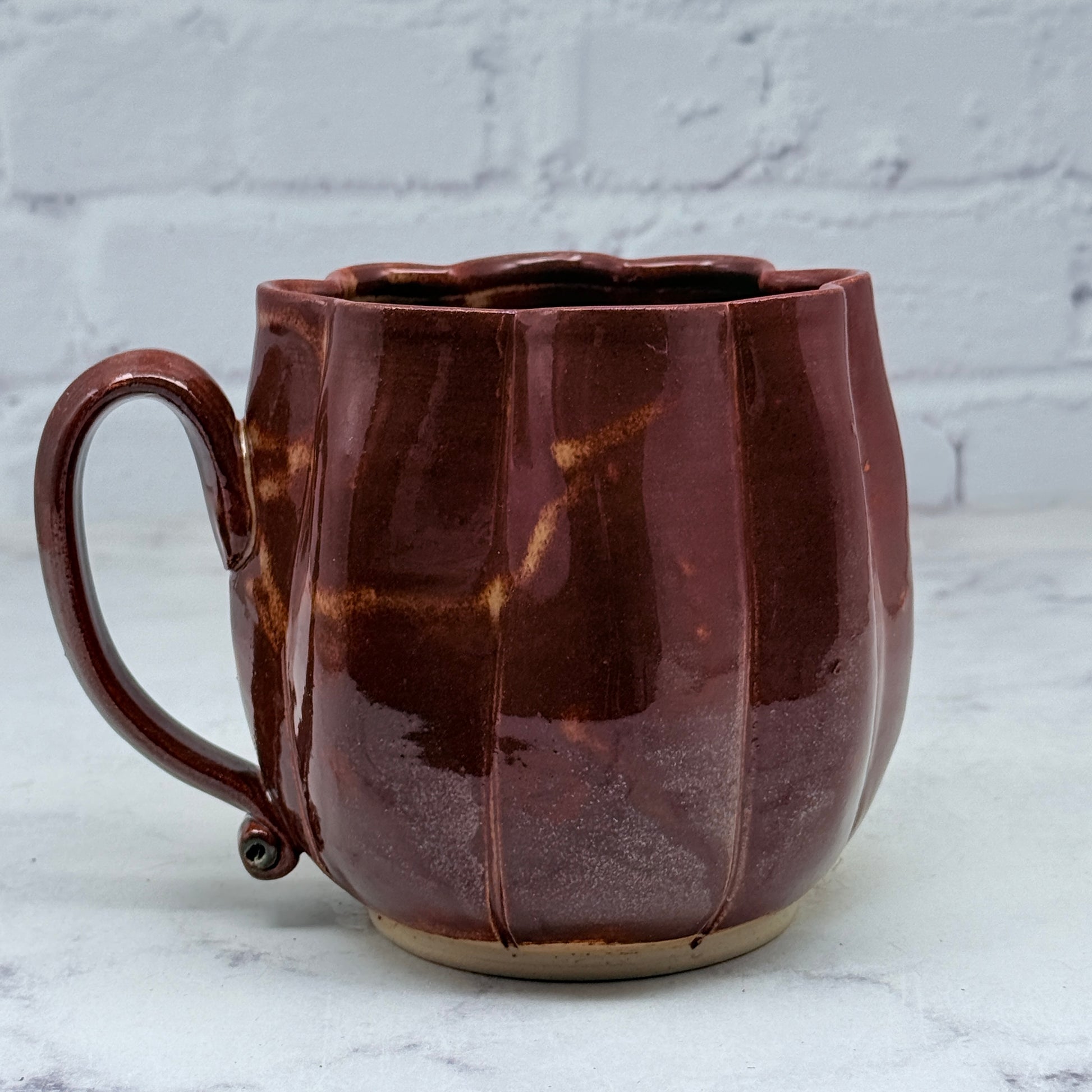 This beautiful mug has a unique pumpkin shape. It would make a great addition to your collection or a great gift for a loved one.