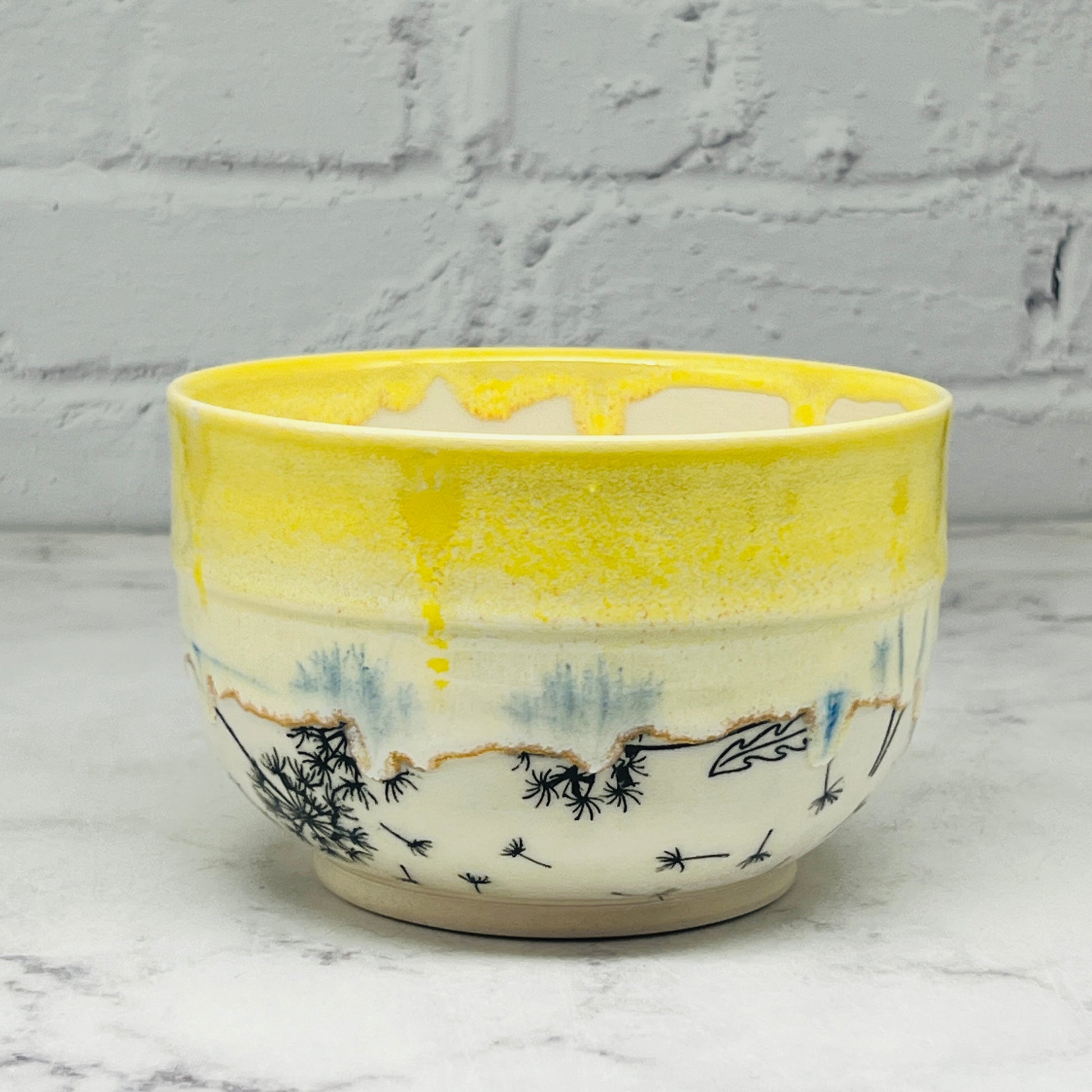 This bowl is a great versatile size. It is decorated with beautiful glaze at the top and a unique design at the bottom. It would make a great addition to your kitchen or a great gift for a loved one.